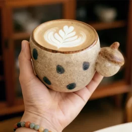 Handcrafted Ceramic Coffee Mug with Hazelnut Handle